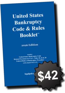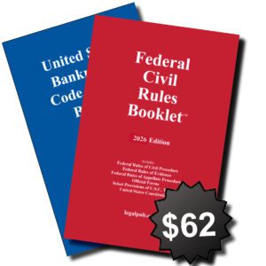 Order our Combo (2026 U.S. Bankruptcy Code & Rules Booklet + 2026 Federal Civil Rules Booklet) to get the Bankruptcy Code and essential Federal court rules. Save about 30% off the price of the latter book. A great way to save! Now shipping.